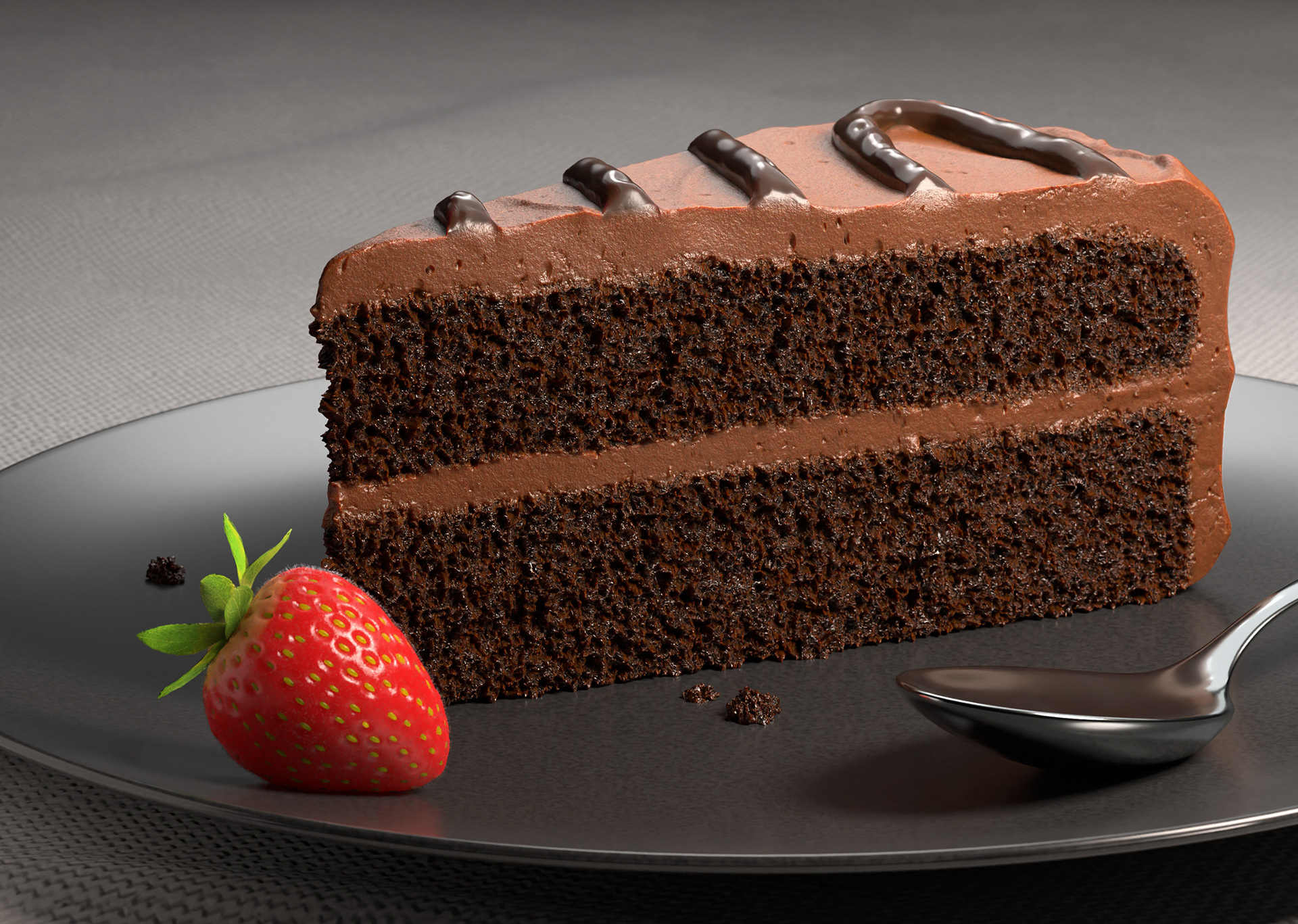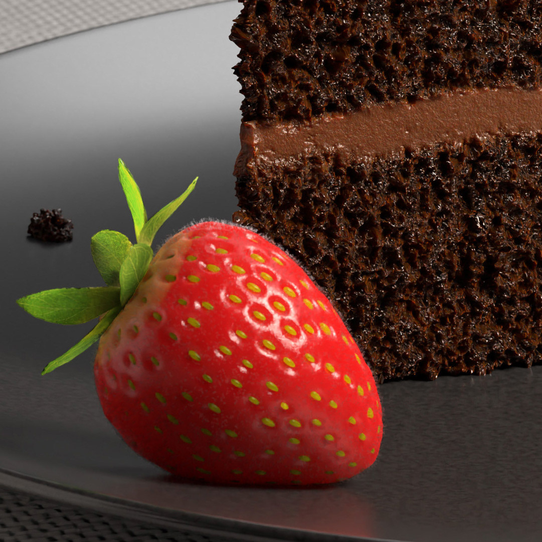 3D chocolate cake with strawberry