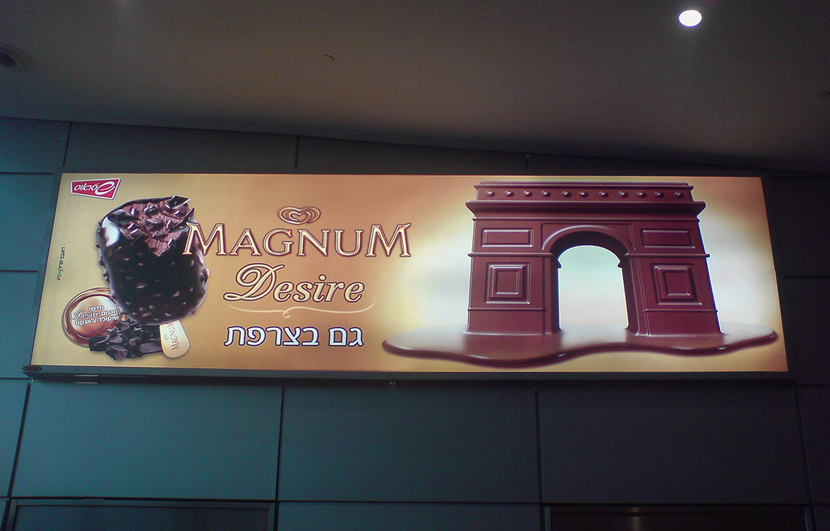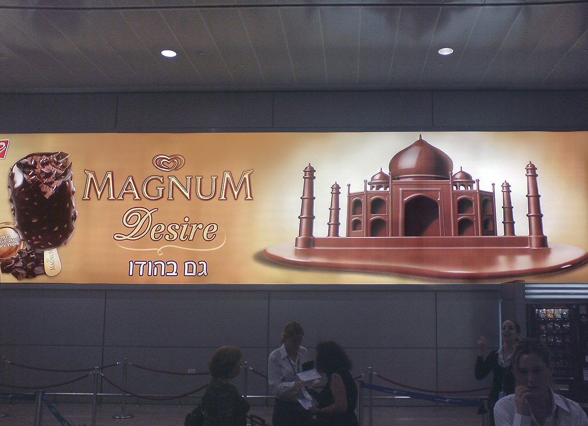 Series of billboard advertising illustrations for Magnum ice creams exposed in the Ben Gurion Airport Terminal Client: Glidot Strauss - Unilever. Technique: digital. Advertidsing Agency: Reuveni Pridan -IPG , Art Director: Yasmin Koren