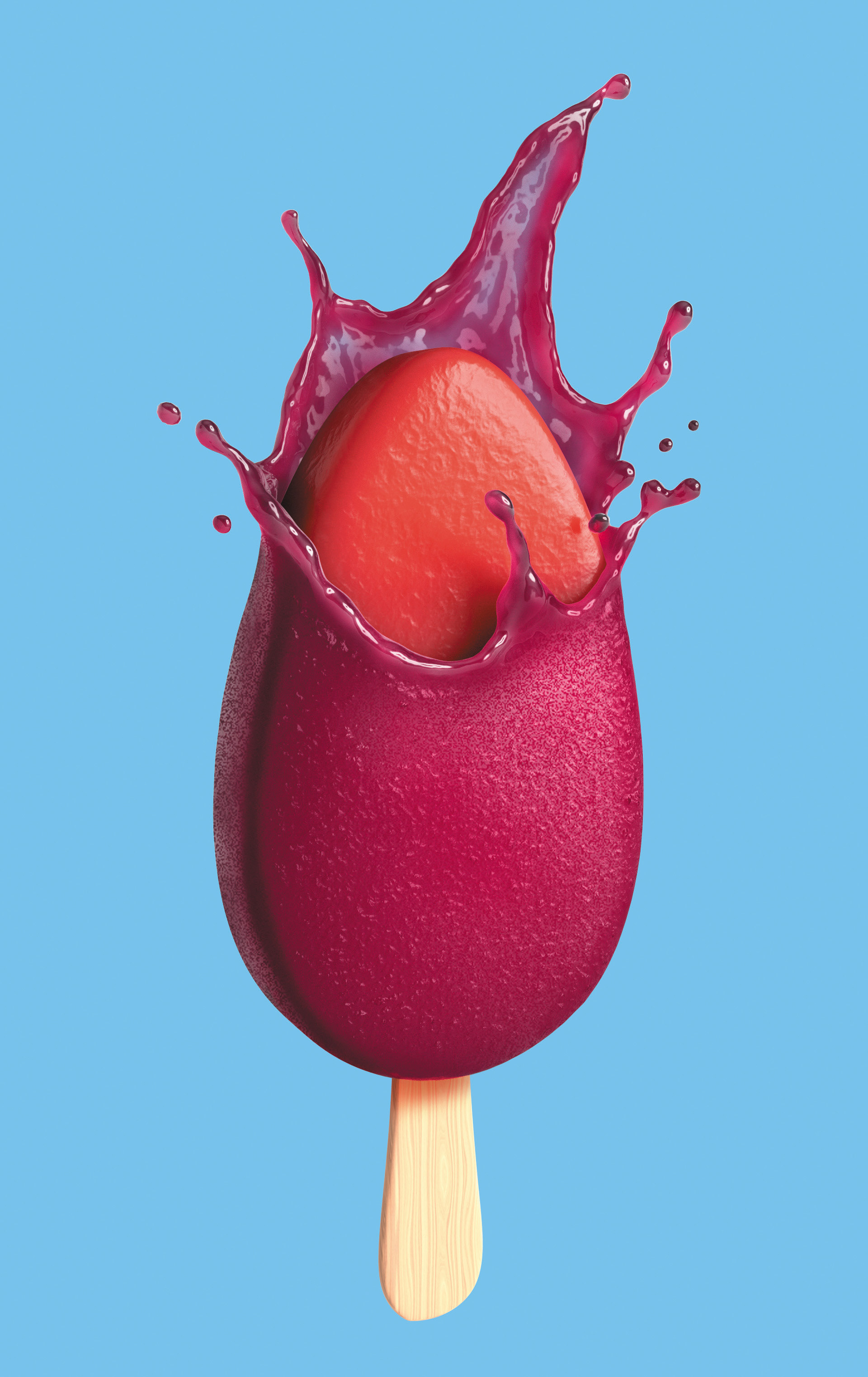 Product Illustrations of "Solero Fruit Boost " popsicles. (Fruits where inserted by the studio). Client: Unilever - Strauss Ice creams . Design Firm : 0304